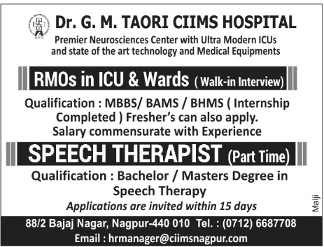 3 ICU RMO’S Full Time MBBS/BAMS/BHMS(Internship Completed) Salary commensurate with experience Read More